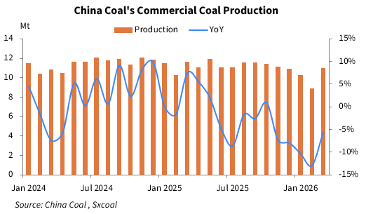 China Coal Energy Co., Ltd., the listed arm of China National Coal Group, produced 10.97 million tonnes of commercial coal in March, down 5.7% from a year ago, said the company in a statement released on April 15.