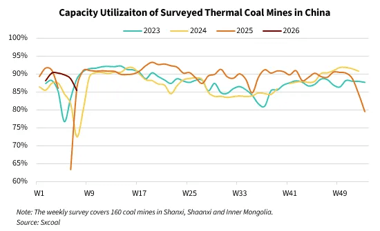 Starting on February 5, private mines in Shaanxi began halting operations for the holiday, followed by many peers in Inner Mongolia from February 10. State-owned mines, meanwhile, would undergo 3-5 days of maintenance.