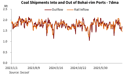 Meanwhile, as the cold wave weakened last week, transshipment resumed at most northern ports, including Qinhuangdao, leading to a week-on-week drop in the number of vessels anchoring at the port.