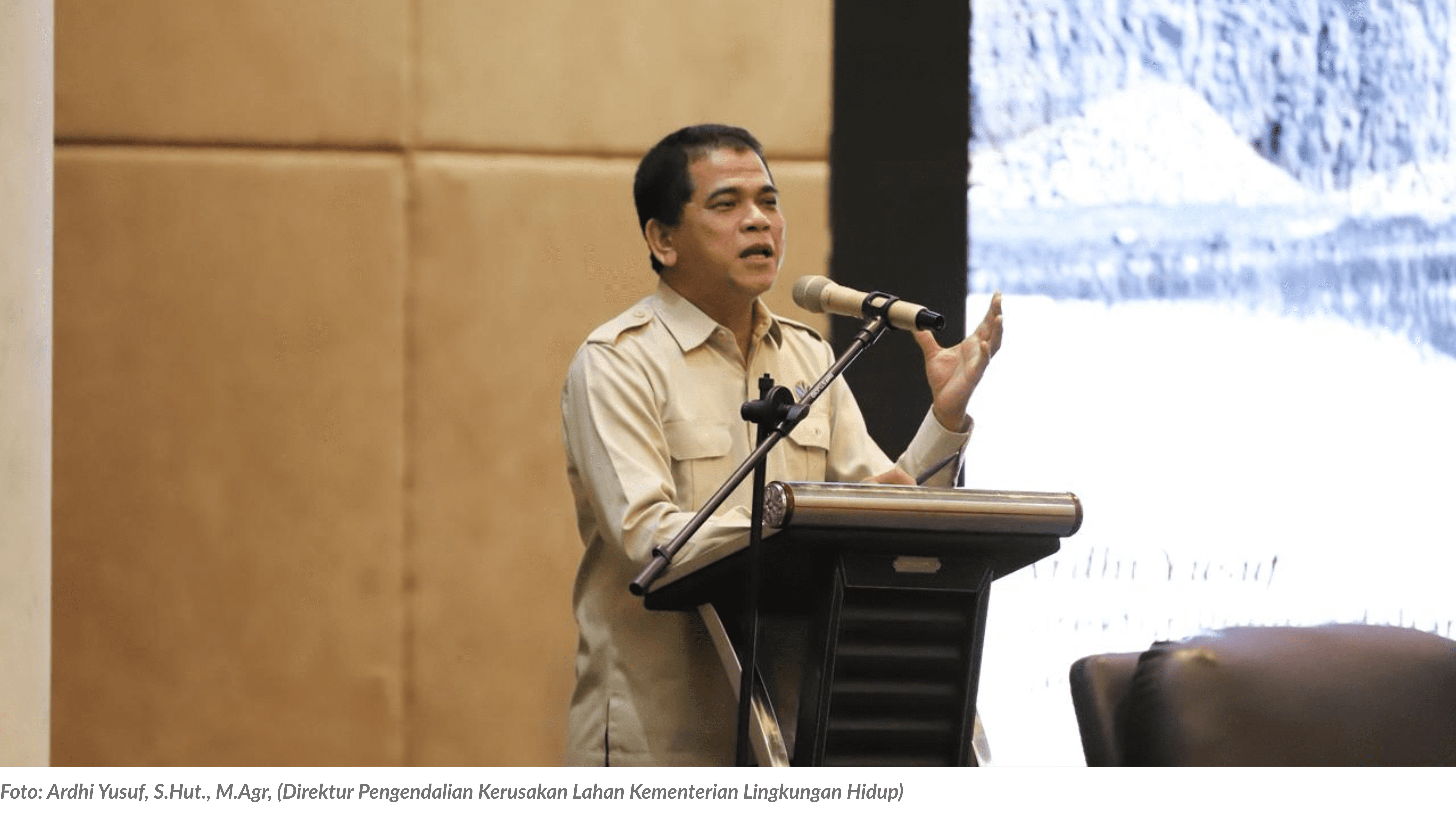 Selanjutnya, sambutan kunci sekaligus paparan kebijakan disampaikan oleh Ardhi Yusuf, Direktur Pengendalian Kerusakan Lahan Kementerian Lingkungan Hidup. Dalam paparannya, Ardhi menjelaskan bahwa Permen 20 Tahun 2025 disusun untuk memberikan kepastian dan standar yang sama dalam menilai kondisi lahan tambang.